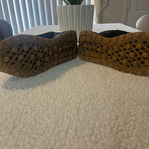 Sleek black Reebok shoes featuring a durable gum sole. Perfect for athletic activities.