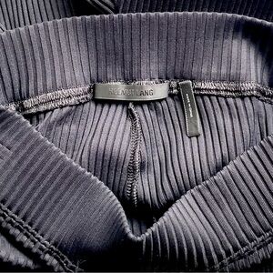 Helmet Lang Ribbed Flare Pants. Pull On. High Rise. Overall Ribbed Texture Fabric. Elastic Waistband. Flare Leg. Full Length. Designer. Minimalist. Neutral. In Very Good Condition.