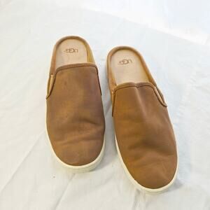 UGG Gene Nubuck Slip on Brown Sneakers Slide Leather Size 7.5
