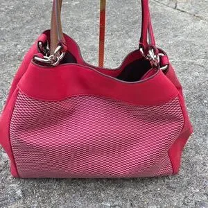 Coach Lexi Red Leather & Jacquard Fabric Shoulder Bag F57540 $498 Retail EUC