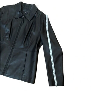 Elevate your wardrobe with this stunning designer leather jacket, purchased from Dillards in 2023. Only worn a few times, it's in like-new condition and still available on dillards.com.