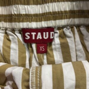 Stylish and comfortable women shorts featuring a chic tan and white striped pattern. Perfect for casual outings and summer days.