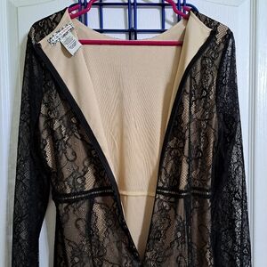 Gorgeous black lace dress with beige shell.