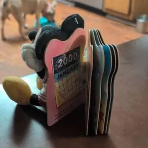 Charming Disney Mickey Mouse plush with a book. Features classic black, yellow, and white colors.