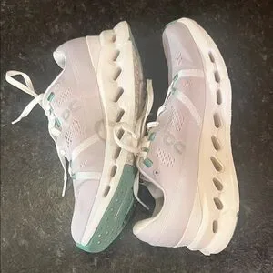OnCloud womens Cloudsurfer running shoes. White with teal accents. Perfect for running or walking and super comfortable. Barely used EUC