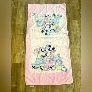 Vintage Disney MINNIE MOUSE pink Cotton Beach Towel J D Franco 44” x 23” VGUC