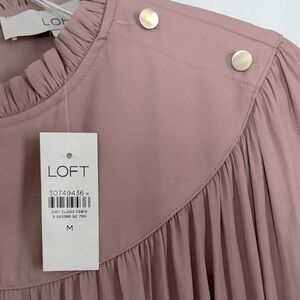 Chic mauve blouse with gold button details. Long sleeves and pleated design. Perfect for versatile styling.