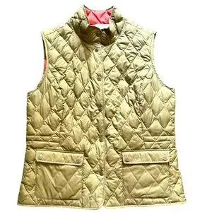 Eddie Bauer Down Quilted Vest Women’s Large Tan Orange Reversible Lightweight