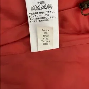 Material: shell lining 100% polyester, body insulation minimum 75% goose down, pocket insulation 100% polyester