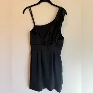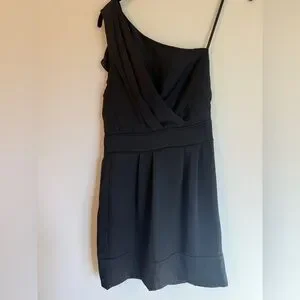 Stylish one-shoulder design. Perfect for evening wear. Timeless black color. Zipper back closure, pockets, in good condition!