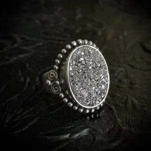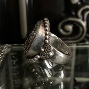 Vintage Sajen Dark Druzy Sterling Silver ring