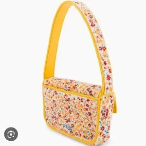 This vibrant floral beaded shoulder bag is perfect for adding a pop of color to any outfit. The intricate beadwork and bright yellow strap make it a standout accessory. Ideal for casual outings or special occasions. excellent condition! only used twice