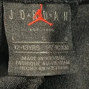 Bold Nike shorts with 'Jumpman' graphic. Features iconic logo. Comfortable fit. The pictures reflect the wear the lettering has. These are a good pair of shorts that I am sure someone can find use for. The price will reflect the letter “wear”. Just want someone to have a chance loving them again if they want!