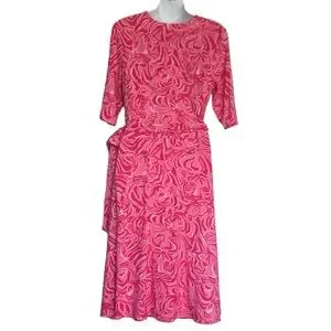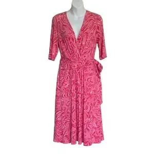 Lilly Pulitzer Faux Wrap Fit & Flare Pink Tiger Dress Size Medium