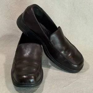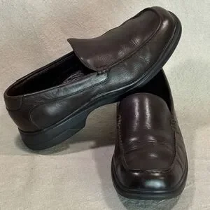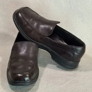 Previously worn; leather uppers; leather lined; cushioned leather insoles; rubber soles. Shoes are in very good condition; light wear on soles and heels; a few fine scratches. #easyspirit #bootandshoetraders