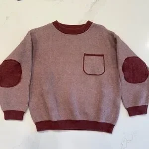 Zara crewneck sweaters in green and burgundy. Both are the same style, with elbow patches and a front chest pocket. They are 100% cotton, mid weight sweater great for fall. Both in same condition, very good used with mild diffuse wash wear but otherwise no rips holes stains.