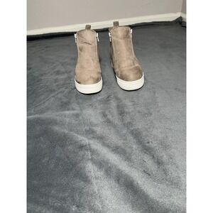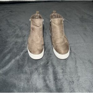 Time & Tru Memory Foam Women's Khaki Blush Suede Wedge Sneakers Size 8 W