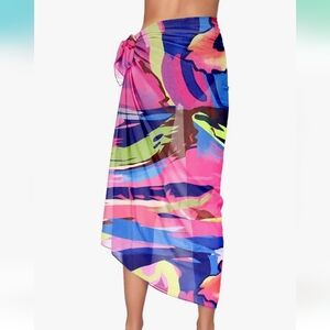 Vibrant and stylish swim sarong perfect for beach days. Features a colorful design with shades of pink, blue, and green. Ideal for adding a pop of color to your swimwear collection.
