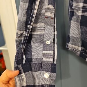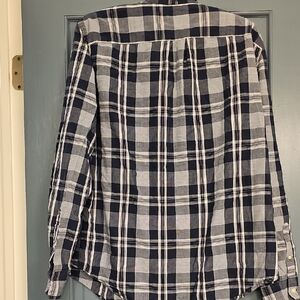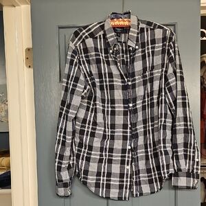 Classic blue and white plaid button-up shirt by American Eagle. Ideal for casual outings.large .classic fit.