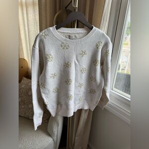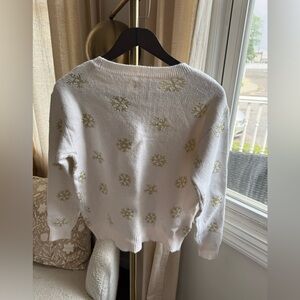 LOFT Cream Sweater with Gold Snowflake Design | M