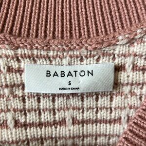 Aritzia Babaton Pink White V-neck Textured Knit Oversized Cozy Chic Cardigan