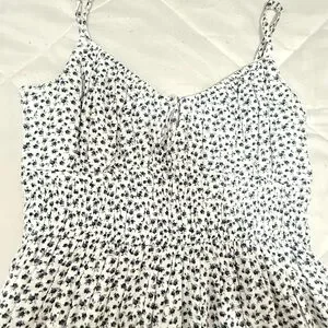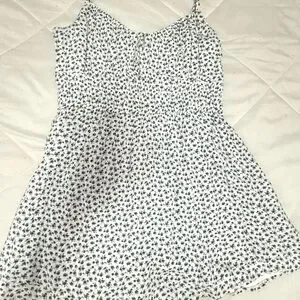 Brand new Hollister floral romper dress, never worn! White with a delicate blue floral print. Adjustable spaghetti straps, smocked waist for a comfy fit, and built-in shorts underneath so you can move freely while still looking chic.