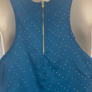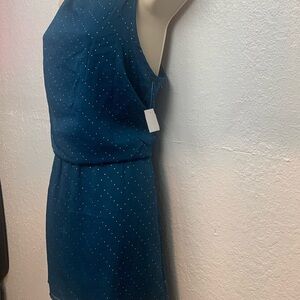 Ambiance Women's Dress Sheer Layer Cinch Waist Sleeveless Short Teal Gold