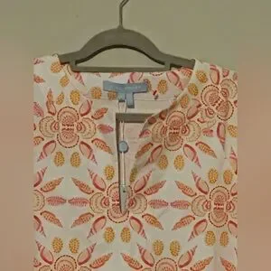 Brand New with Tags Hill House 100% Cotton Artemis Dress in Shell Mosaic Design! Gorgeous and classic silhouette for effortless style. Features orange, pink, cream/ white and yellow hues. The perfect spring and summer dress!