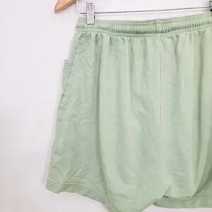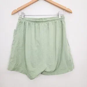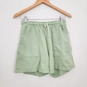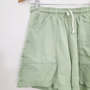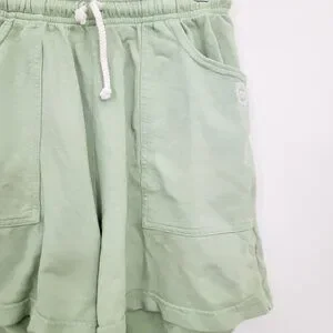 Light green drawstring shorts with side pockets.