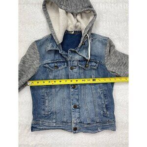 Free People Knit Hooded Denim Jacket XS Long Sleeve Removable Hood Button Up