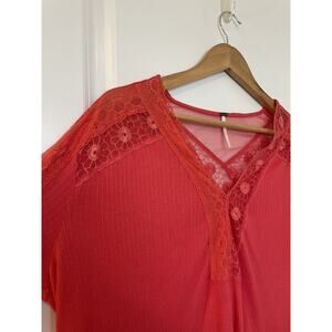 Free People Pink Lola Lace Floral V-Neck Sheer Coral Top Shirt Size Small