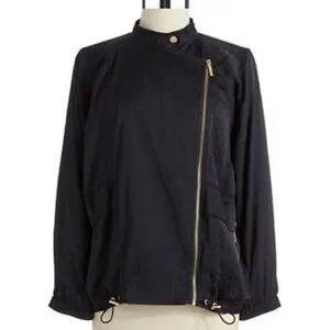 MICHAEL KORS Asymmetrical Oversized Zipper Front NAVY Jacket ( LARGE ) NWT $160