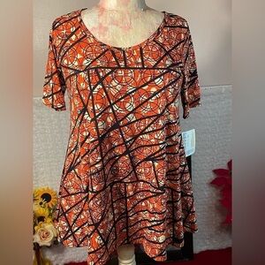 # 357 NWT Lularoe Perfect T Mis Sized. It’s a M Coral Navy Geometric Short Sleeve Tee!