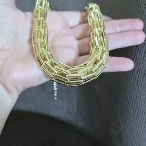 An elegant tubular caged necklace comprised of 1/2" gold💛 paperclip📎 links