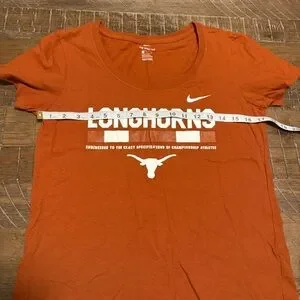 Nike Longhorns shirt, Texas Longhorns tee, UT Austin shirt, burnt orange Nike shirt, Longhorns women’s tee, Texas university apparel, college football shirt, small Nike tee, women’s athletic shirt, UT fan gear, NCAA Texas shirt, Longhorns scoop neck tee, Nike sportswear, vintage Texas tee, Nike burnt orange shirt