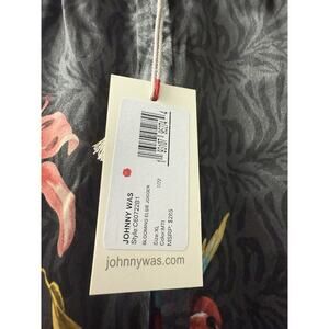 Gorgeous satiny joggers with bohemian butterflies and flowers print on black background from Johnny Was. NWT. XL.
