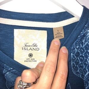 Tasso Elba Island Pacific Blue Tropical Short Sleeve T Shirt Size Large