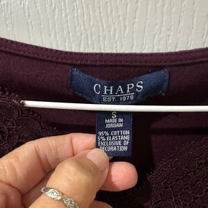 Chaps Burgundy Wine Lace Long Sleeve Top