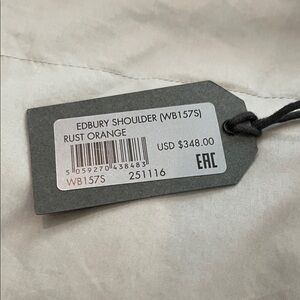 COLOR OF THE SEASON! Sleek burnt orange leather shoulder bag by All Saints. Features a wide strap and minimalist design. Perfect for everyday use. 17in W, 11in H. Very roomy with one zipper pocket and one extra pocket inside. Leather has some minor creasing that will disappear with wear. Shown in pic.