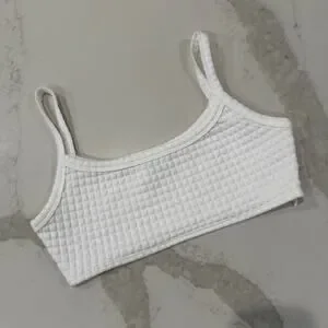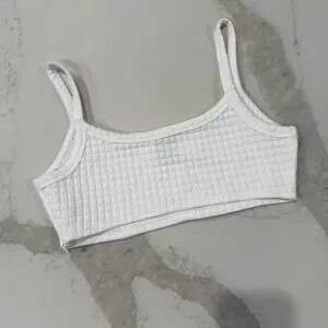 Princess Polly Waffle Knit Lounge Crop Top Women's 6 White Side Zipper Bra Comfy