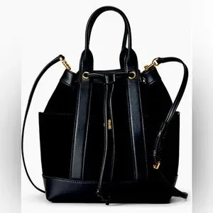 Veronica Beard Goody Suede and Leather Bucket bag Black NWT