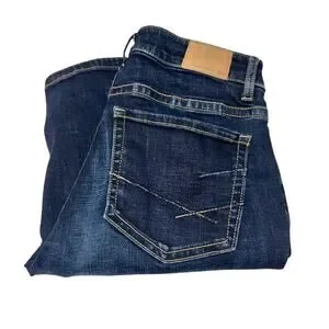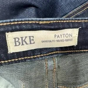 Stylish mid-rise, bootcut jeans by BKE. Dark blue denim with classic stitching. Adorable + in great condition!