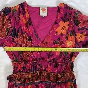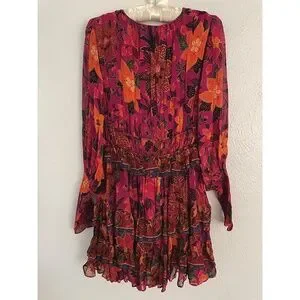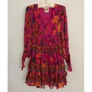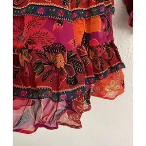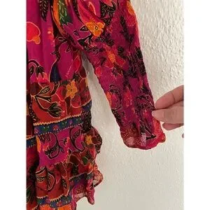 Farm Rio Tropical Tapestry Long-Sleeve Tiered Mini Dress Boho Small