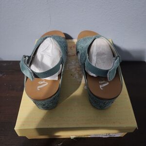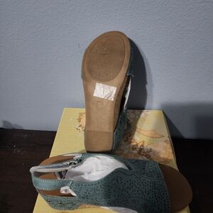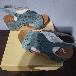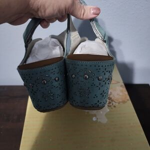 Excellent preowned conditon. Step out in style with these elegant turquoise women's wedges. Perfect for any occasion, these shoes offer both comfort and sophistication. So comfy, can wear all day. Great with jeans, dresses, and even shorts