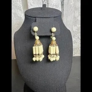 Vintage Ivory Beaded Dangle Clip-On Earrings