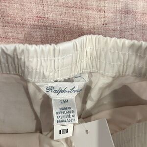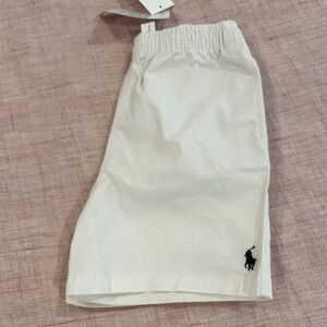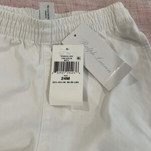NWT! Ralph Lauren classic white shorts with iconic blue horse logo. Comfortable elastic waistband. Ideal for casual wear. Size 24 months.