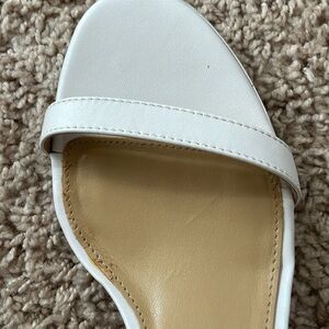 These elegant white heels from Talbots feature a minimalist design with a delicate kitten heel and thin ankle straps, perfect for adding a touch of sophistication to any formal occasion. Lightly worn with sights of wear on the insoles as pictured. Women’s size 9 M