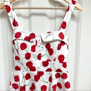 Sleeveless mini dress with cherry print. Fabric has stretch and is flattering and comfy. Perfect for summer and brunches! Feel free to send me any questions you have.