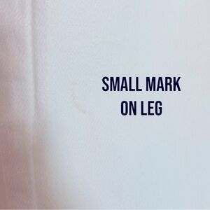 Small mark on leg (pictured) barely noticeable. Some scratching/tarnishing on hardware. No other flaws to note.