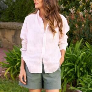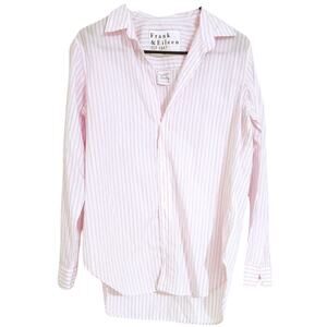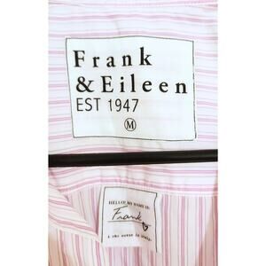 AUTHENTIC Frank & Eileen pink wide white strip button up cotton shirt, Style: FRANK Superfine, The "Frank" style is described as a trimmer version of the Eileen, offering a more tailored fit.